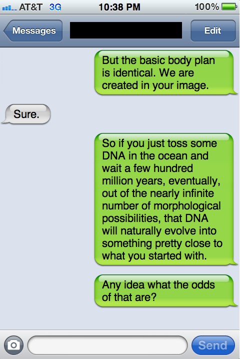 Parece que la película apunte a una creación "anti-darwinista" (como señala el biólogo de pacotilla), ya que siempre se presenta a los Ingenieros como nuestros creadores (no de la vida en general), y a priori parece difícil pensar que del ADN recompuesto del Ingeniero saldrá una ameba o incluso un pez que finalmente evolucionará hasta el ser humano... (¡pedazo de plan el de los Ingenieros entonces...!). ¿Quizás le han querido dar a la peli un trasfondo cristiano? (Ciencia Ficción cristiana... guaaaauuuu...).